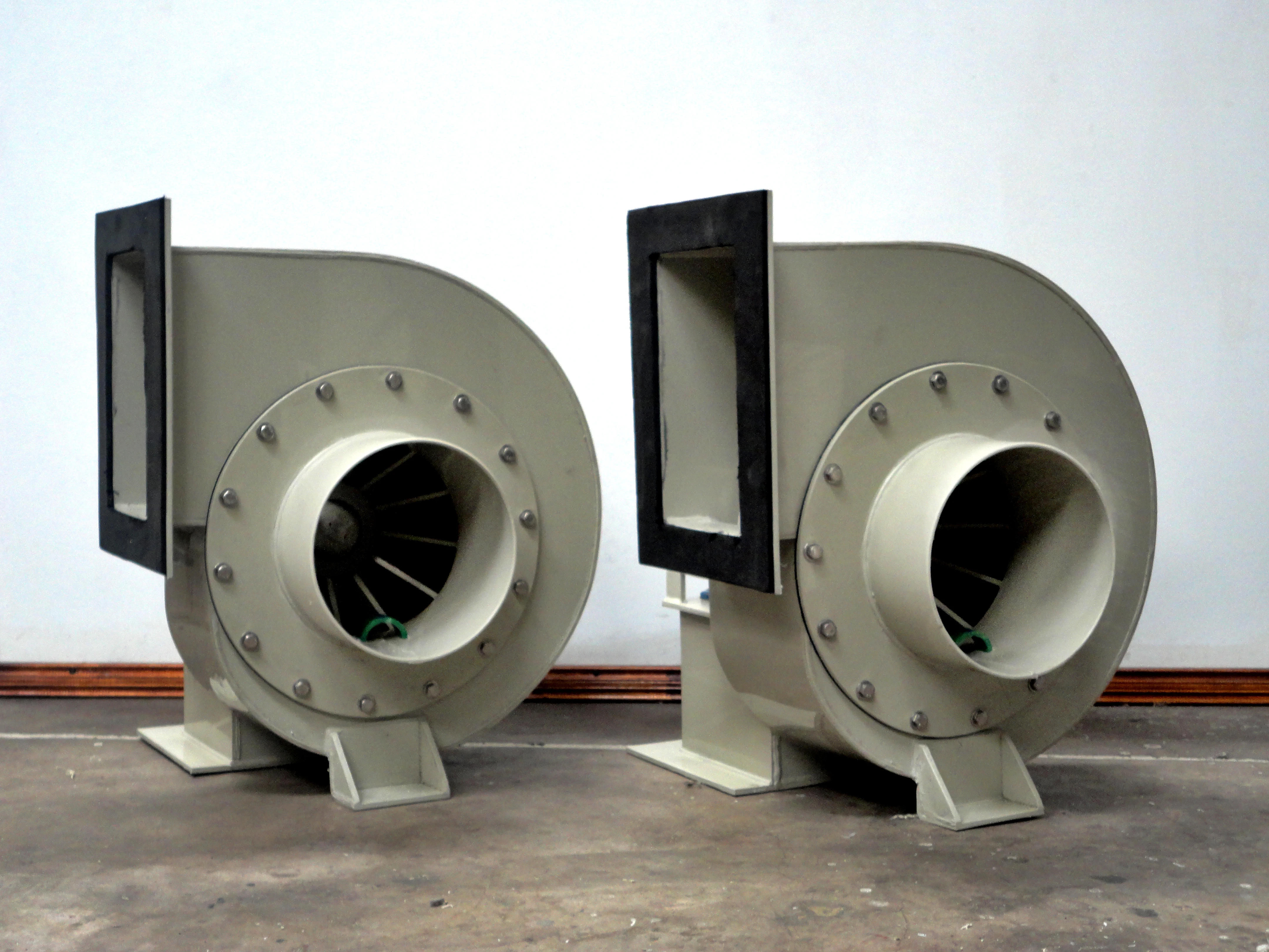 Los ventiladores centrífugos son construidos en su totalidad con plásticos de ingeniería, Polipropileno. siendo la mayor ventaja, el aislamiento de los vapores corrosivos. Esto significa que en ningún momento los gases toman contacto con alguna parte ferrosa del ventilador.